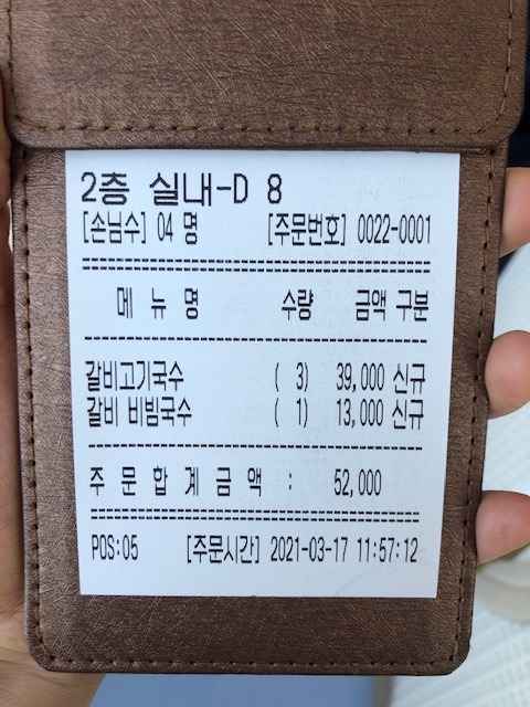 이거는 갈비비빔국수이고 마찬가지로 가격은 일만삼천냥입니다.