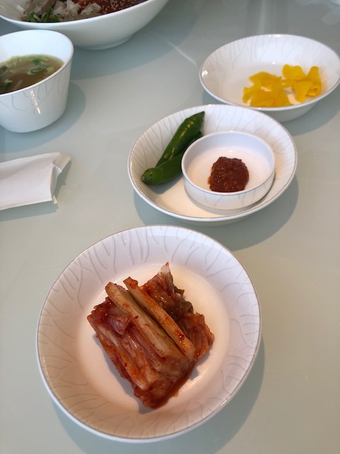 밑반찬으로는 김치와 고추, 단무지가 나옵니다.