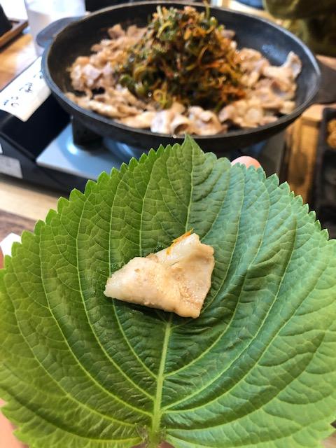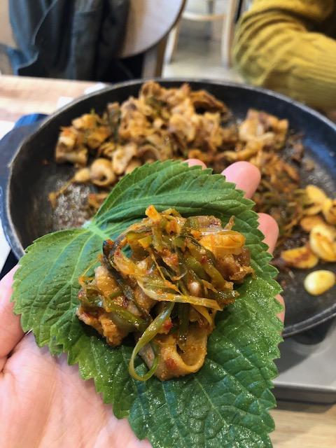 깻잎에 싸서 고기를 먹습니다.