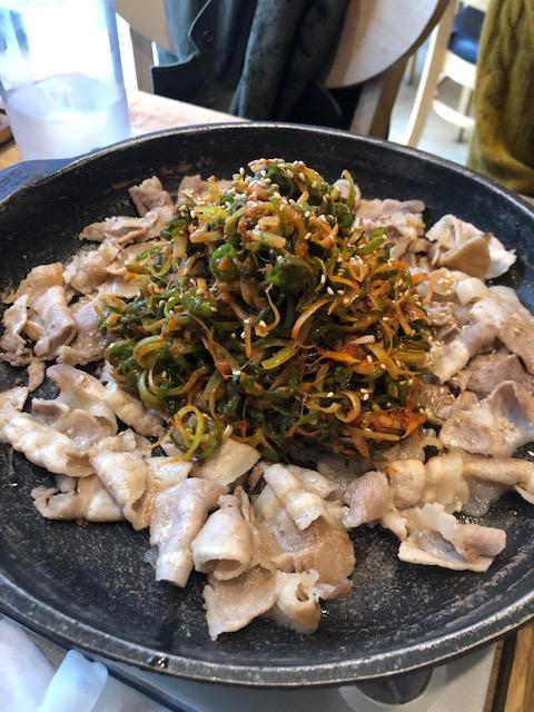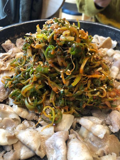 대패삼겹살이랑 파무침이 맛있게 모여있군요.