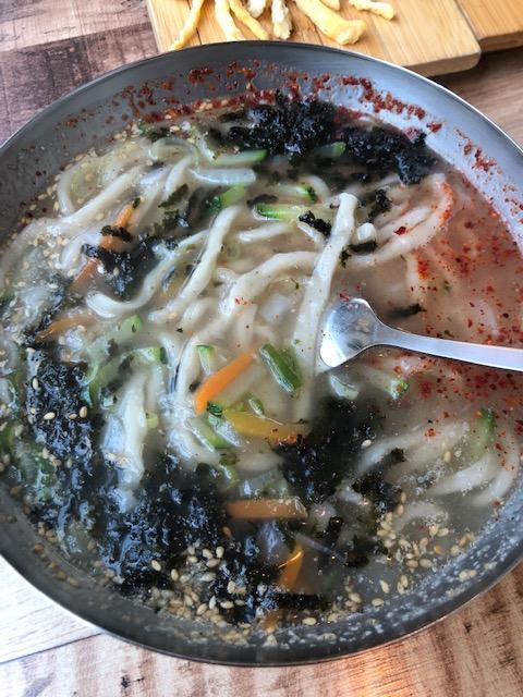 맛은 약간 곰탕국물에 칼국수 면을 넣어서