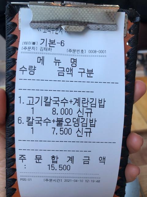 칼국수와 김밥 둘 다 먹고 싶으신 분은