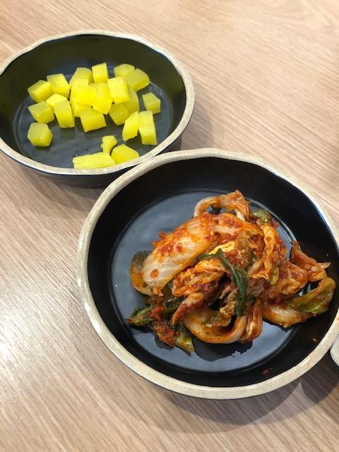 밑반찬으로는 김치와 단무지가 나오고