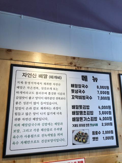 배말칼국수김밥 통영루지점입니다.