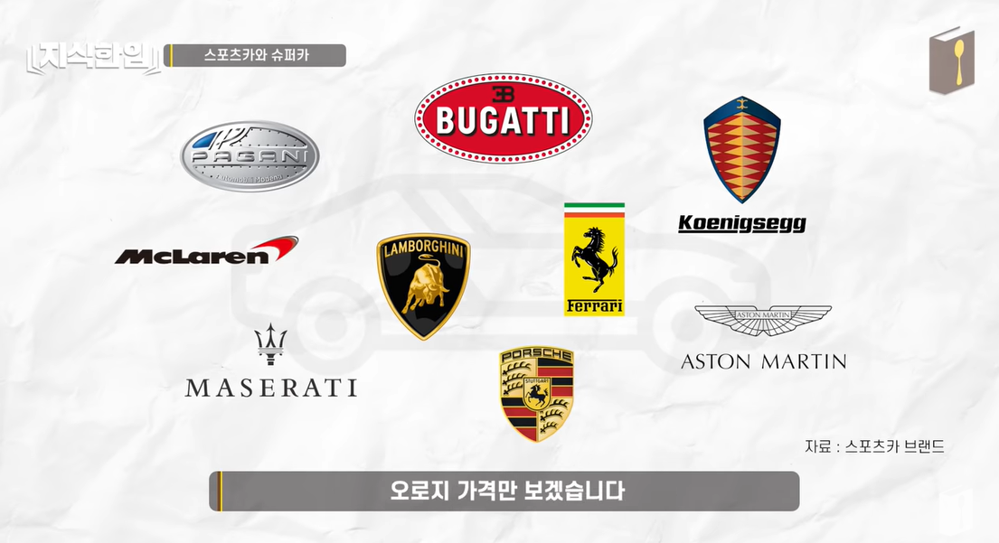 스포츠카를 판매하는 브랜드들이 아주 많습니다.