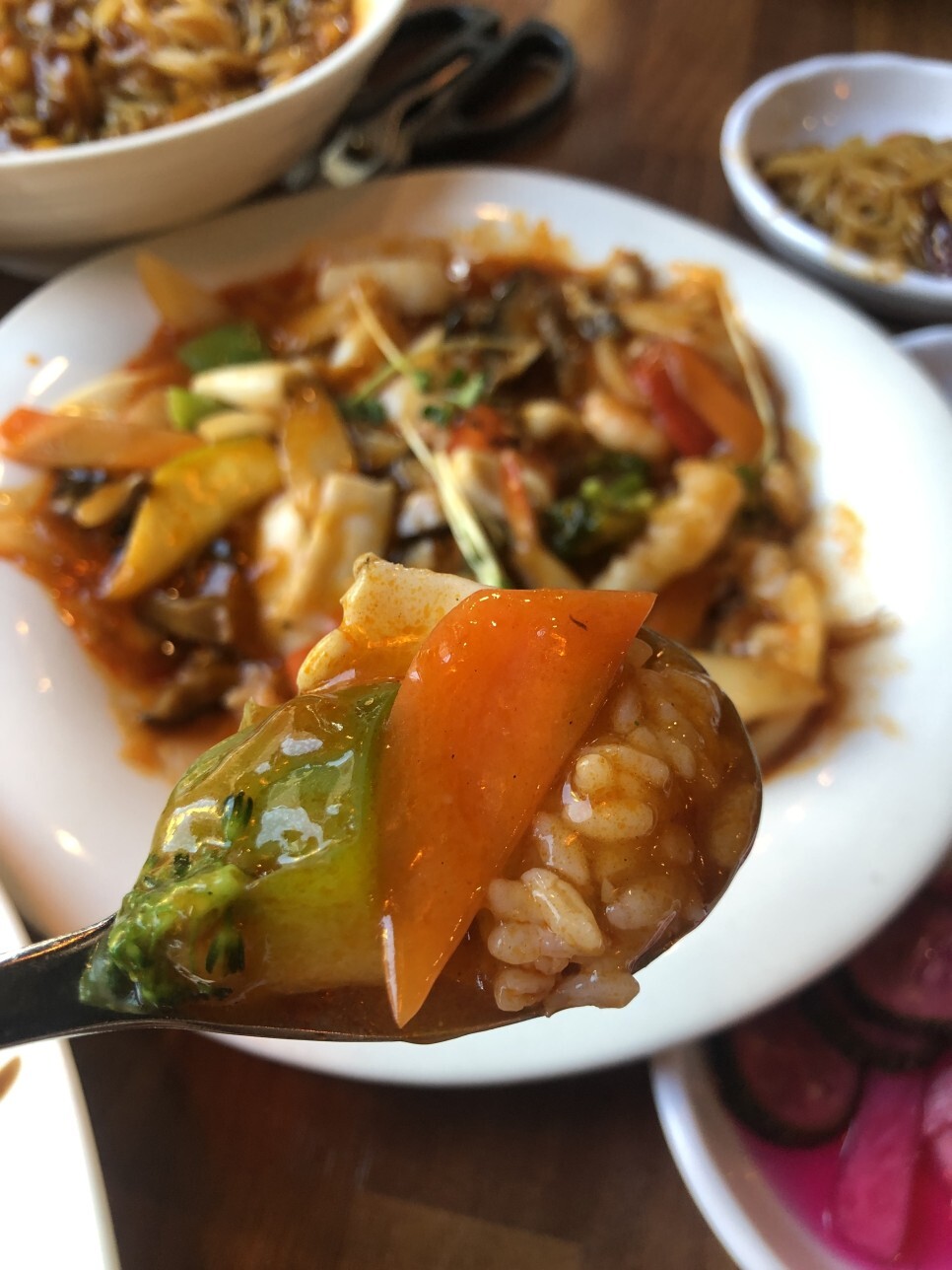 해물덮밥 소스 부은 면 맛입니다.