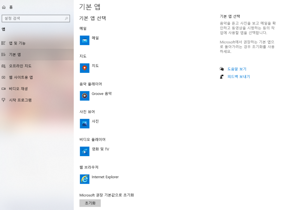 그리고 '기본앱'을 클릭하고