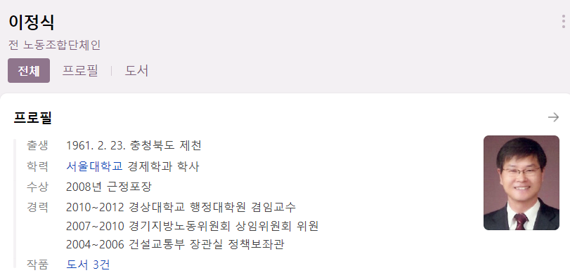 고용노동부장관으로는 이정식.