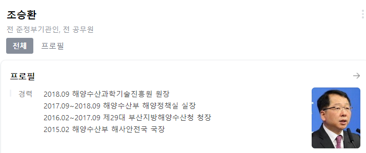 해양수산부장관으로는 조승환.