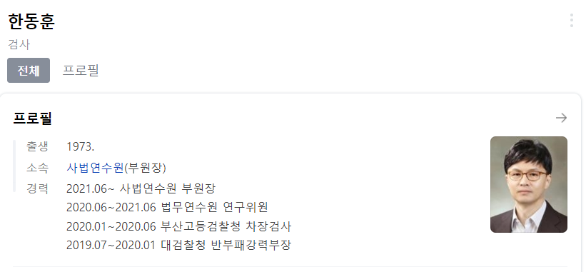 법무부장관으로는 한동훈.
