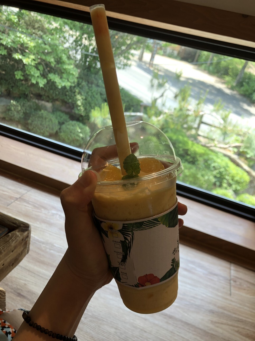 망고스무디는 위에 망고가 몇개 올라가있고