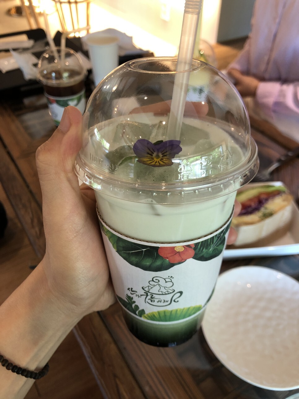 쑥라떼는 위에 꽃을 얹어주고