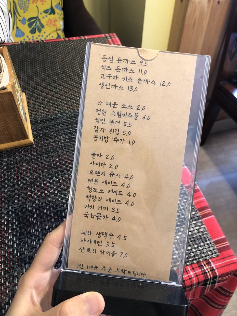 메뉴판 참고하셔요.