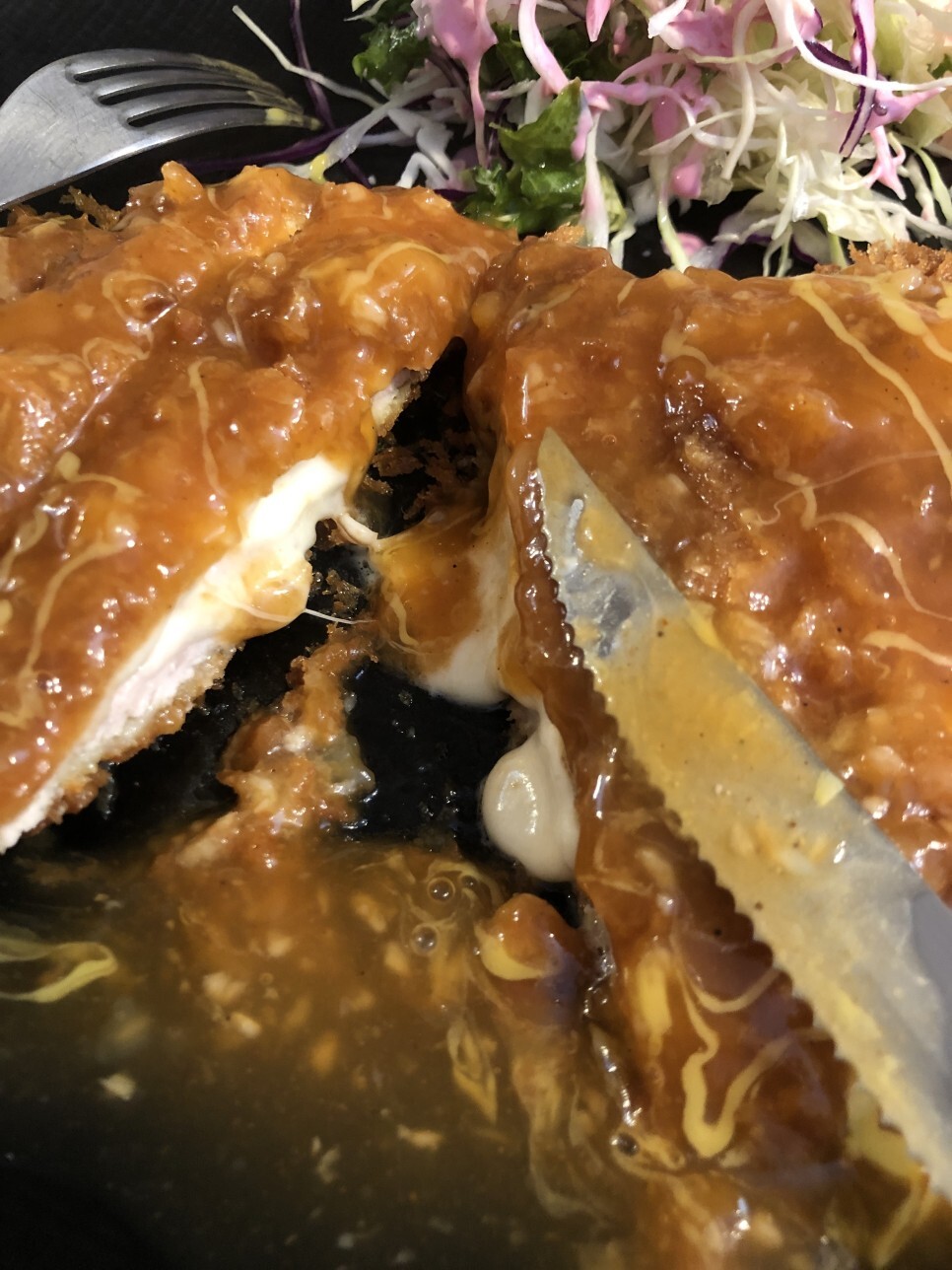 입으로 먹어봐도 뭐가 치즈돈가스인지 알 수 없지비.