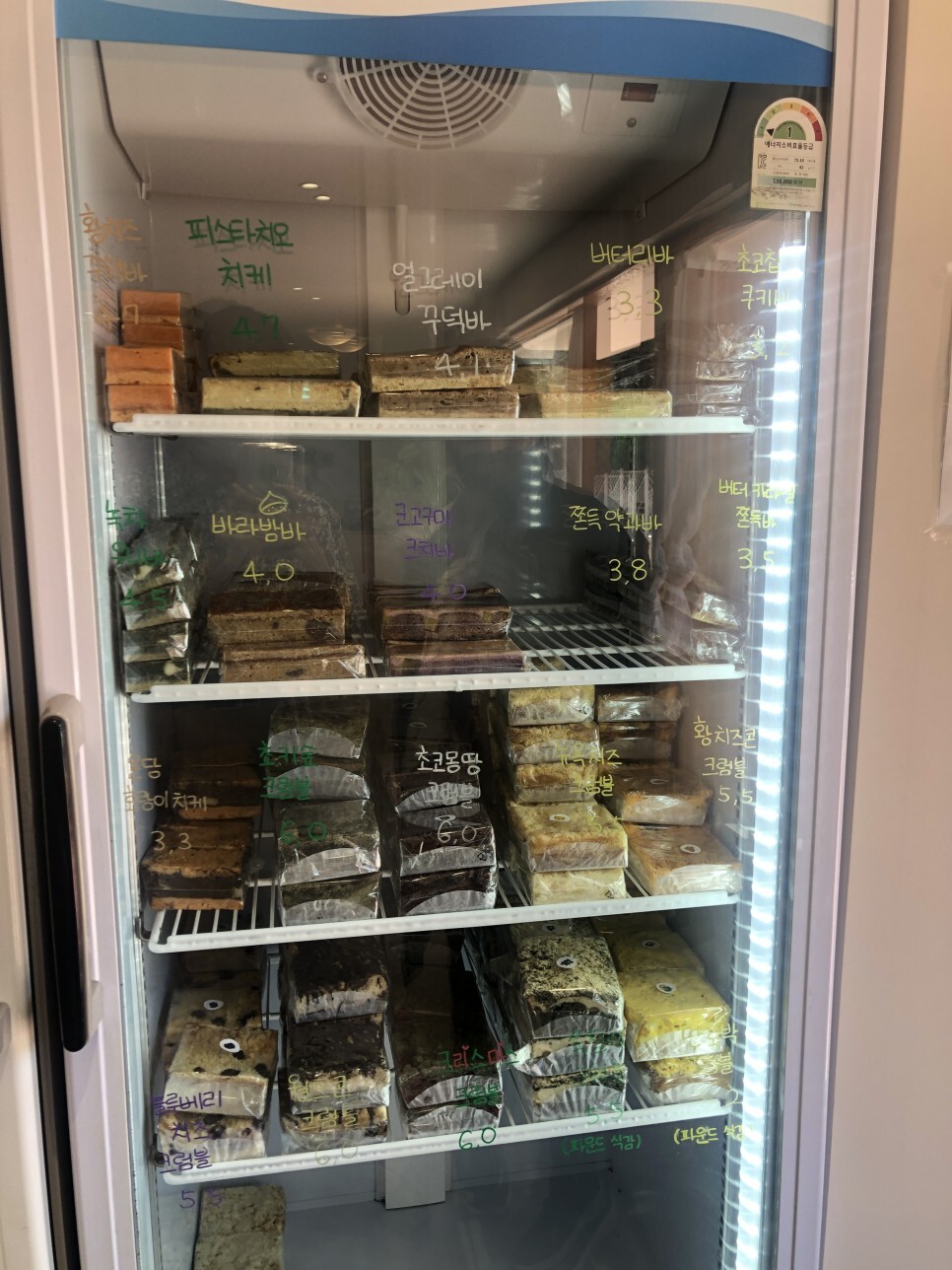 여러종류의 크럼블이 냉장고에 들어있네요.