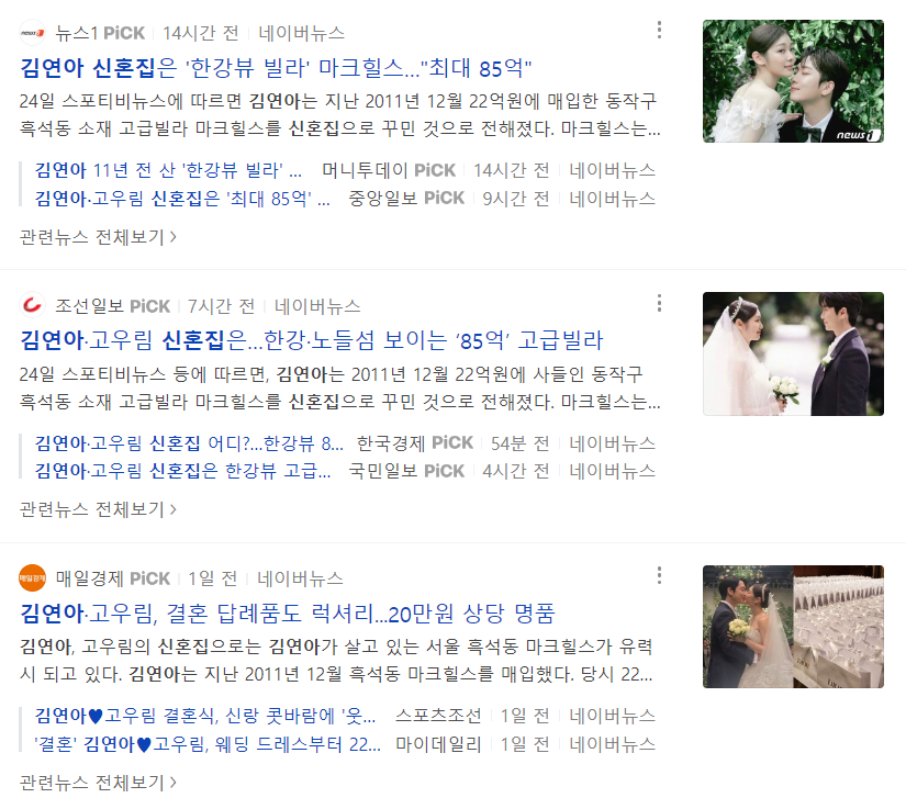 그리고 10월 22일 김연아님도 결혼을 했다고 합니다.