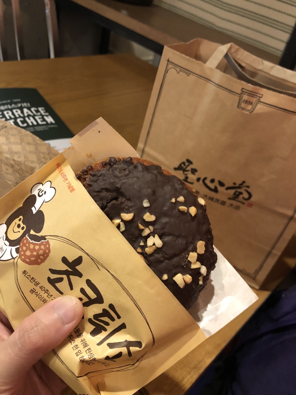 성심이는 성심당 본점 앞에 앉아있습니다.