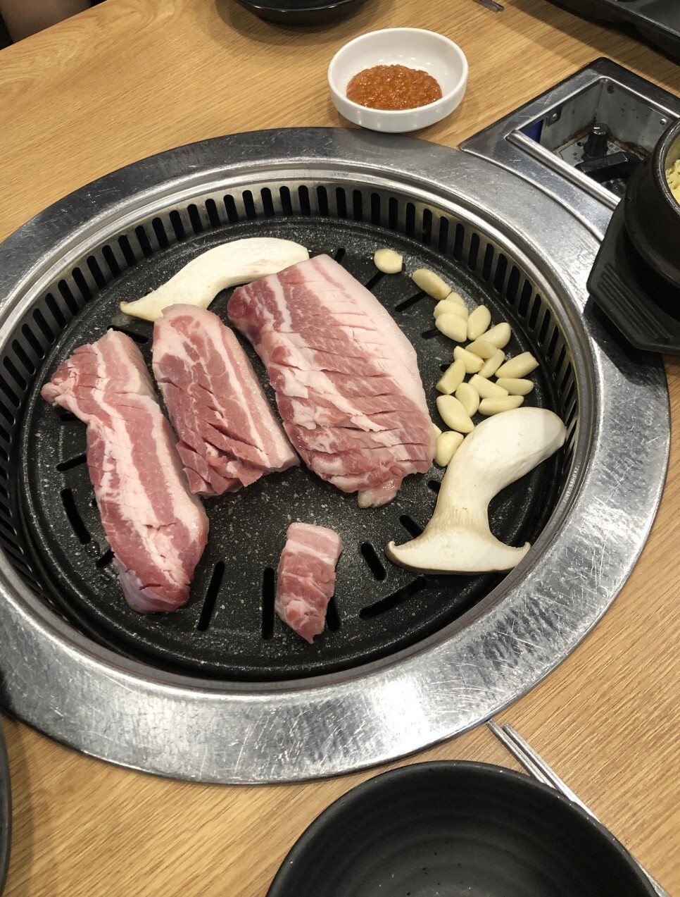 저녁으로는 삼겹살을 먹었습니다.