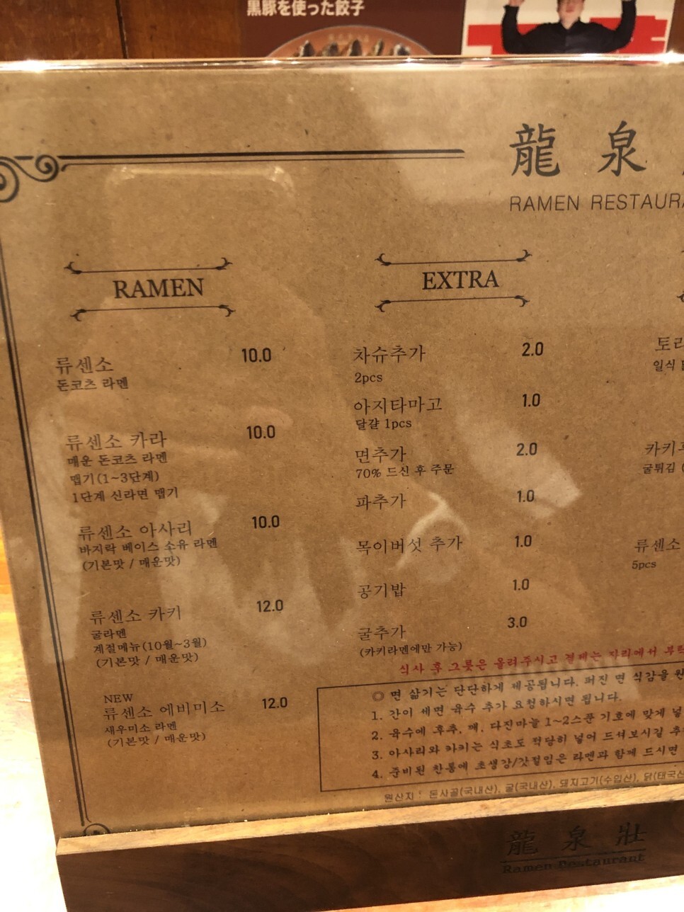 돈코츠라멘이랑 소유라멘, 미소라멘 등이 있군요.