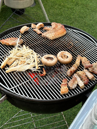 숯불에 고기를 구워먹으니