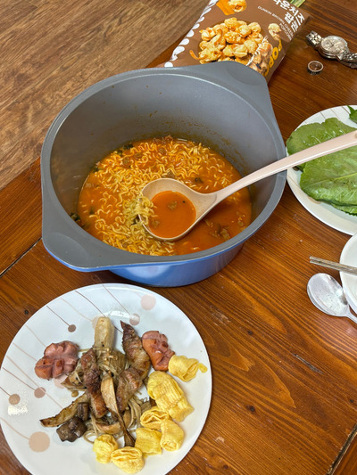 전날 남은 고기랑 라면 냠냠.