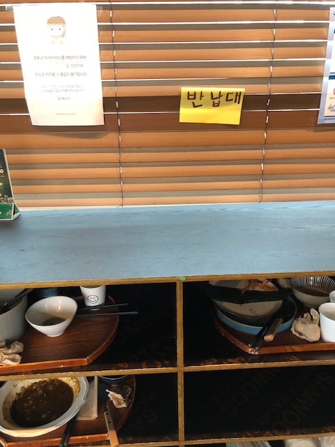 다 먹은 그릇은 반납대에 슝 넣어주고