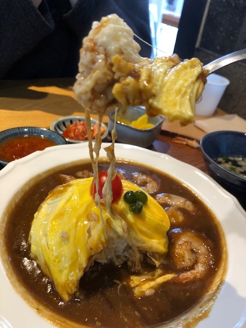 일본식 카레에 오므라이스를 같이 먹는 맛입니다.