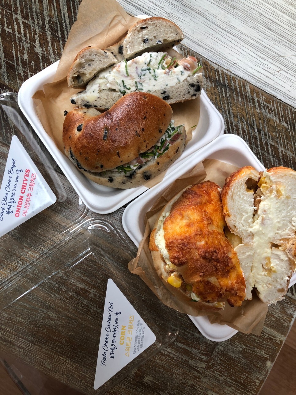 트리플치즈캐슈넛베이글&스위트콘크림치즈/블랙올리브치즈베이글&어니언부추크림치즈